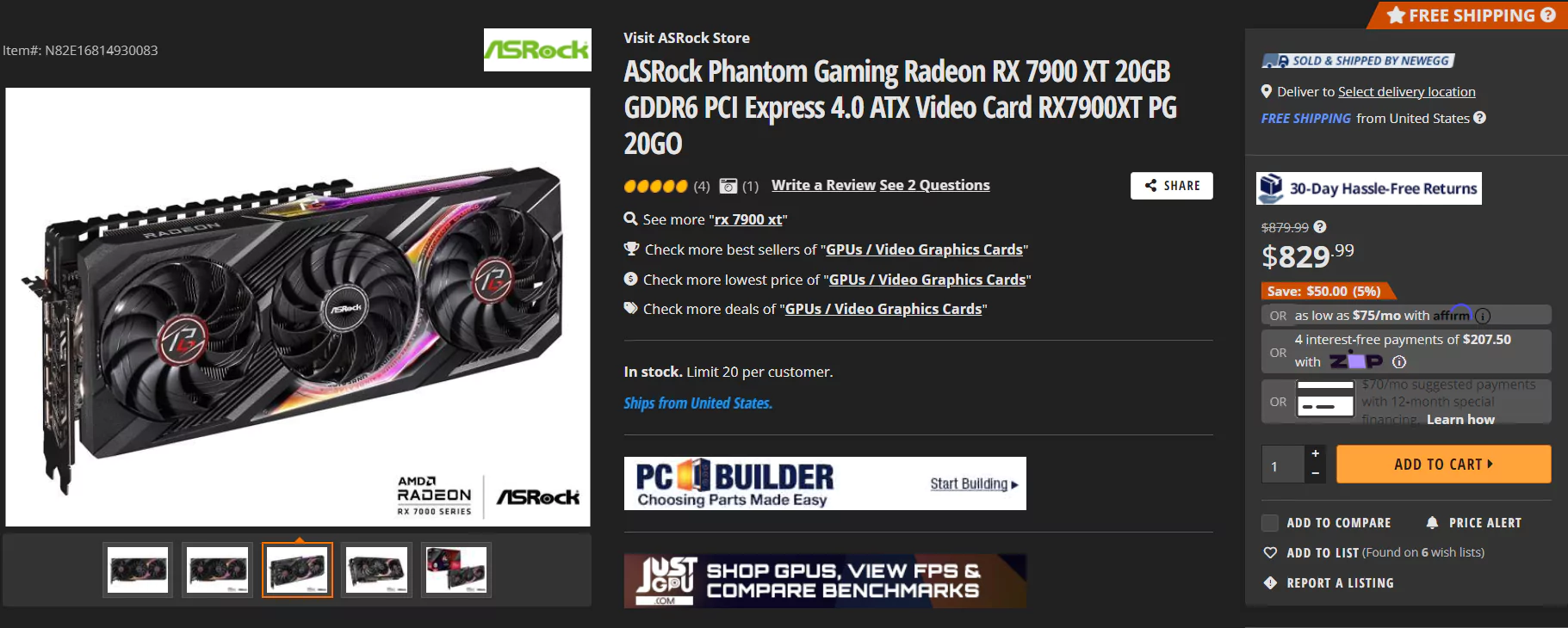 AMD의 라데온 RX7900XT 커스텀 모델 가격이 이제 뉴에그에서