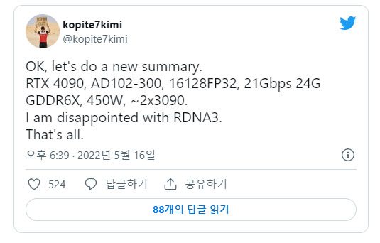 이는 RTX 3090 Ti에 비해 TBP가 33% 증가합니다. 최신 루머에 따르면 NVIDIA는 7월 중순까지 차세대