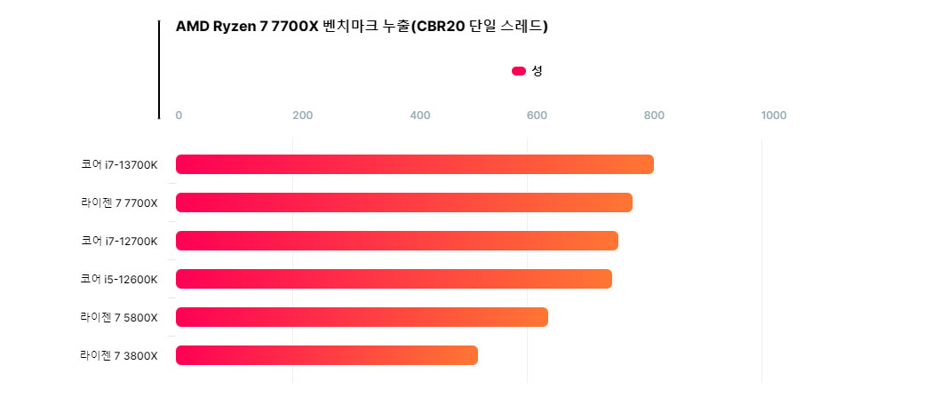 AMD의 라이젠7 7700X 8코어 젠4 CPU는 시네벤치 R20에서 벤치마킹되어